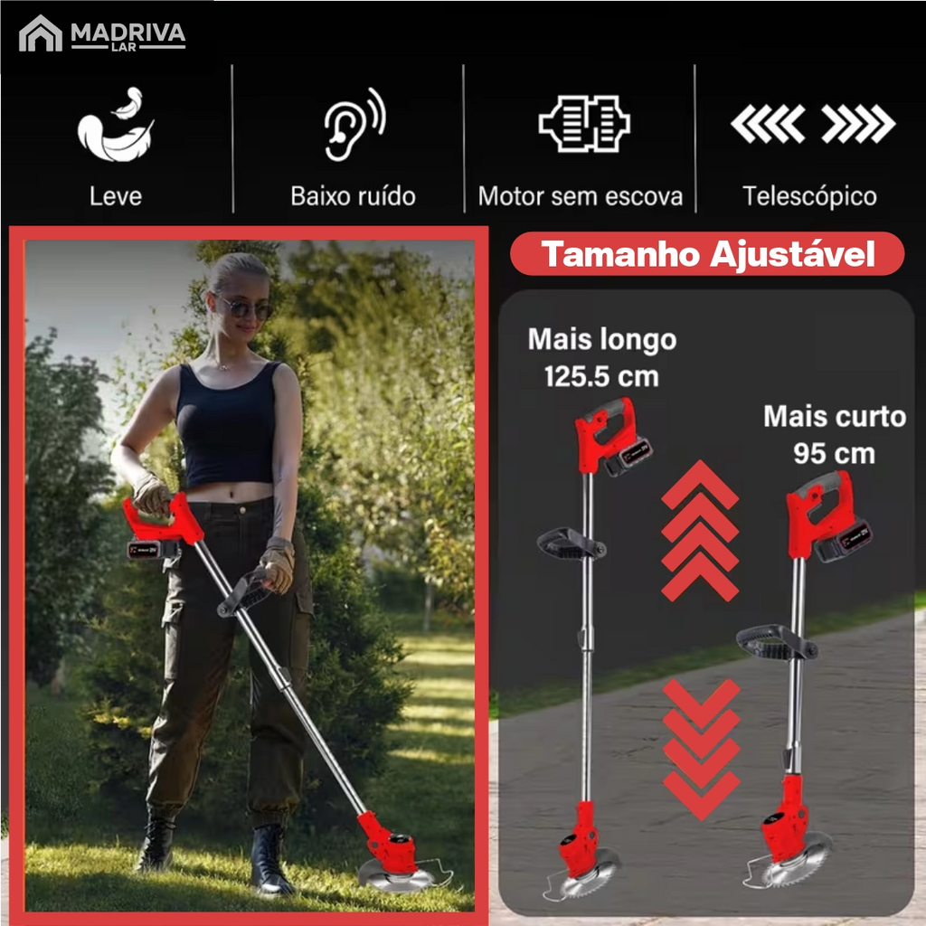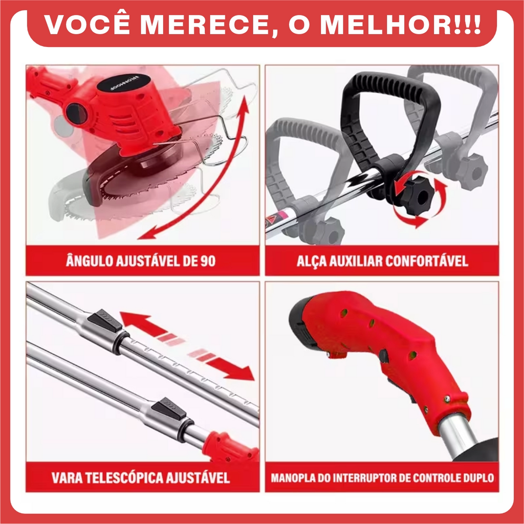 Roçadeira Elétrica TurboMax Multiuso 5 em 1 + BRINDE: 4 Baterias De Lítio 21 Volts - COMPRE 1 LEVE 2